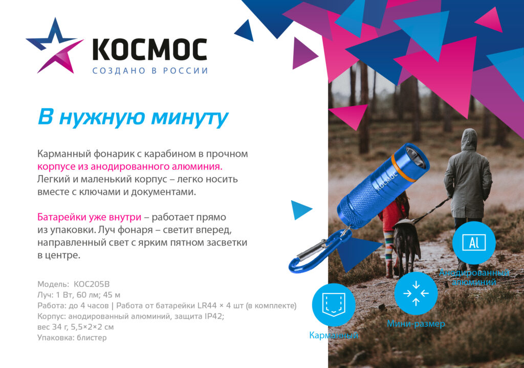 В условиях мобильной и динамичной жизни портативные источники освещения становятся важным элементом личного снаряжения. Они используются в быту, во время поездок, при выполнении технических работ, а также в различных ситуациях, требующих оперативного доступа к дополнительному источнику света. Надёжный карманный фонарь способен обеспечить безопасность, удобство и эффективность действий в условиях недостаточной освещённости. Одним из практичных решений в данной категории является модель KOC205B от российского производителя Космос, которая сочетает компактные размеры, прочную конструкцию и стабильные световые характеристики.